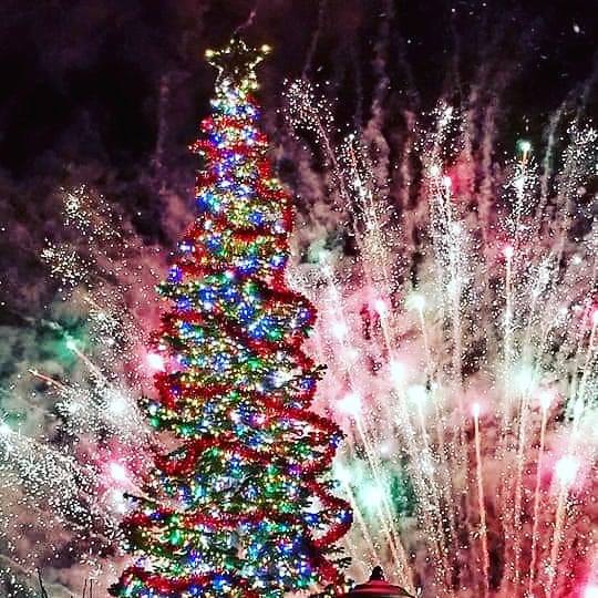Tree lighting, carols, cookies, Santa, outside City Hall